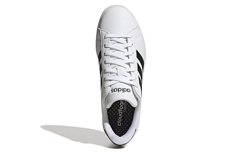Keep your sneaker game sharp and clean with the Grand Court 2.0 men’s sneaker from adidas. Featuring a faux leather upper with the classic 3-Stripes for extra style, this lace-up shoe pairs well with jeans or shorts. The Cloudfoam Comfort sockliner cushions while the outsole adds bounce to every step.