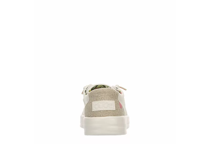 Find your uncommon style in the HEYDUDE Karina women’s slip-on sneaker. With a cotton canvas upper featuring lively prints for a custom feel, this sneaker is machine washable for easy maintenance. The removable Memory Foam footbed and leather lining offer ergonomic support, cushioning your steps while the ultralight outsole sets you free to explore unfettered.