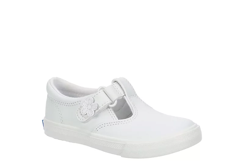 She’ll be the cutest girl around in the Daphne infant girls’ slip-on sneaker by Keds. This super sweet T-strap design is constructed with a leather upper. Its Memory Foam footbed will keep her comfortable, and the adorable flower keeps her right on trend!