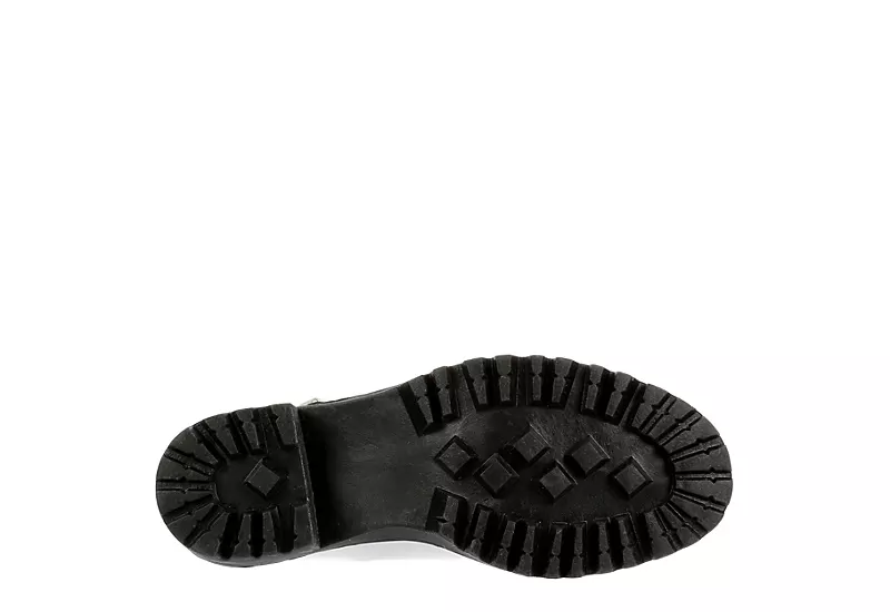 All grown up and ready to play. The Madden Girl Hollyy women’s loafer is equipped with a Mary Jane design that rests on a trendy 1½” stacked platform. This synthetic upper with a lug tread sole is the perfect match for cute skirt outfits or jumpers for a look that will ignite.