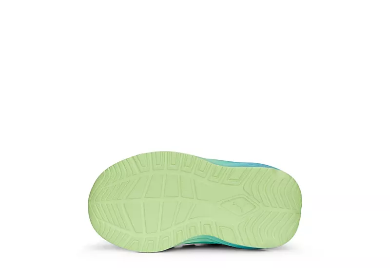 He’ll look too cute in the PUMA Softride One4All Fade infant boys’ sneaker. With a mesh & synthetic upper featuring dual pull tabs for easy entry, this slip-on shoe is versatile enough to keep up with him. The Kinder-Fit® insole & colorful SOFTRIDE midsole cushion every step, while the outsole offers bouncy traction.