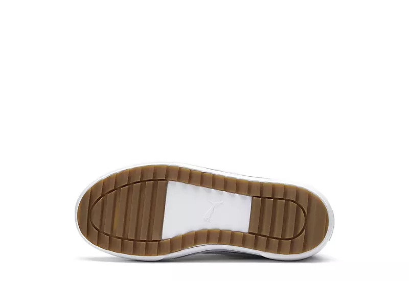 Boss up in the formidable PUMA Kaia Platform Mid women’s sneaker. With a canvas & synthetic upper featuring a padded collar & tongue for extra comfort, this lace-up sneaker has a striking look that will take you places in style. The SoftFoam+ sockliner offers optimal cushioning while the rubber traction outsole provides support, lift and stability to see you through the day.