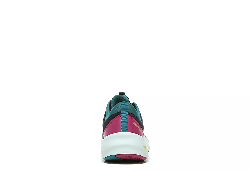 Reach all your fitness goals with the Never Quit women’s training shoe from Ryka. This high-impact trainer features a breathable mesh upper with lace-up closure and front and back pull tabs for an easy, secure fit and a padded heel collar for added comfort. An anatomical insole offers extra arch support, while the durable rubber outsole with flex grooves and Pivot Point helps with smooth and easy turns.Â