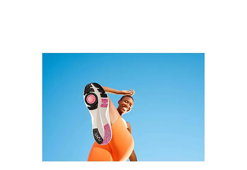Reach all your fitness goals with the Never Quit women’s training shoe from Ryka. This high-impact trainer features a breathable mesh upper with lace-up closure and front and back pull tabs for an easy, secure fit and a padded heel collar for added comfort. An anatomical insole offers extra arch support, while the durable rubber outsole with flex grooves and Pivot Point helps with smooth and easy turns.Â