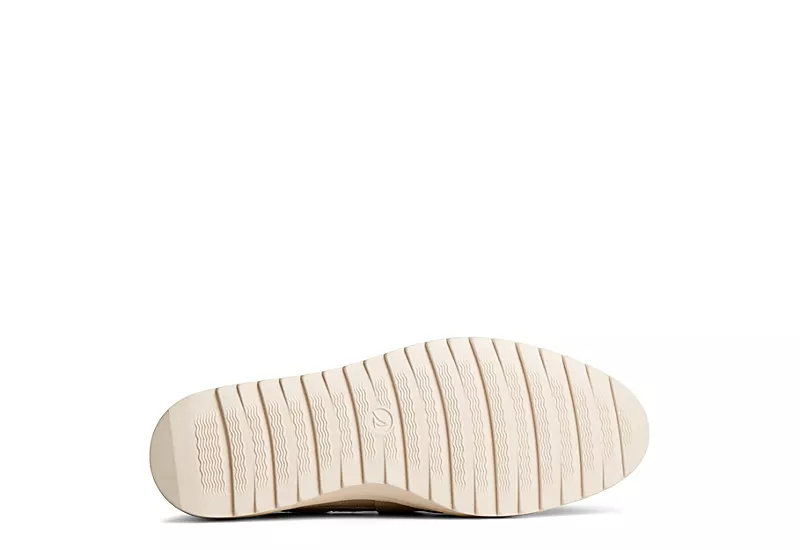 Adventure out on the water in the Cruise Plushstep women’s boat shoe by Sperry. With a linen upper featuring a hidden stretch gore detail for an easy fit and a corded moc toe design, this lightweight shoe will keep you comfortable all day long. A plushstep outsole with a sawtooth design and raised siping provides outstanding grip and traction.Â