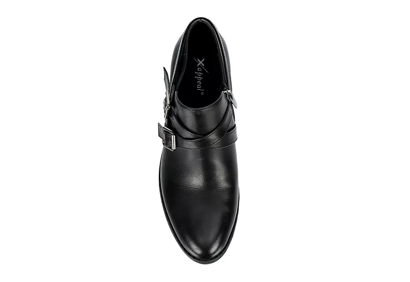 Step into fall with the Cassidy women’s bootie from Xappeal. With a faux leather upper featuring strap accents with buckle details and an inside zipper for a convenient fit, this trendy bootie, with its almond-shaped toe and low-block heel, pairs perfectly with skinny jeans and a cute sweater. A padded footbed offers all-day comfort, while the synthetic outsole provides excellent grip and stability.